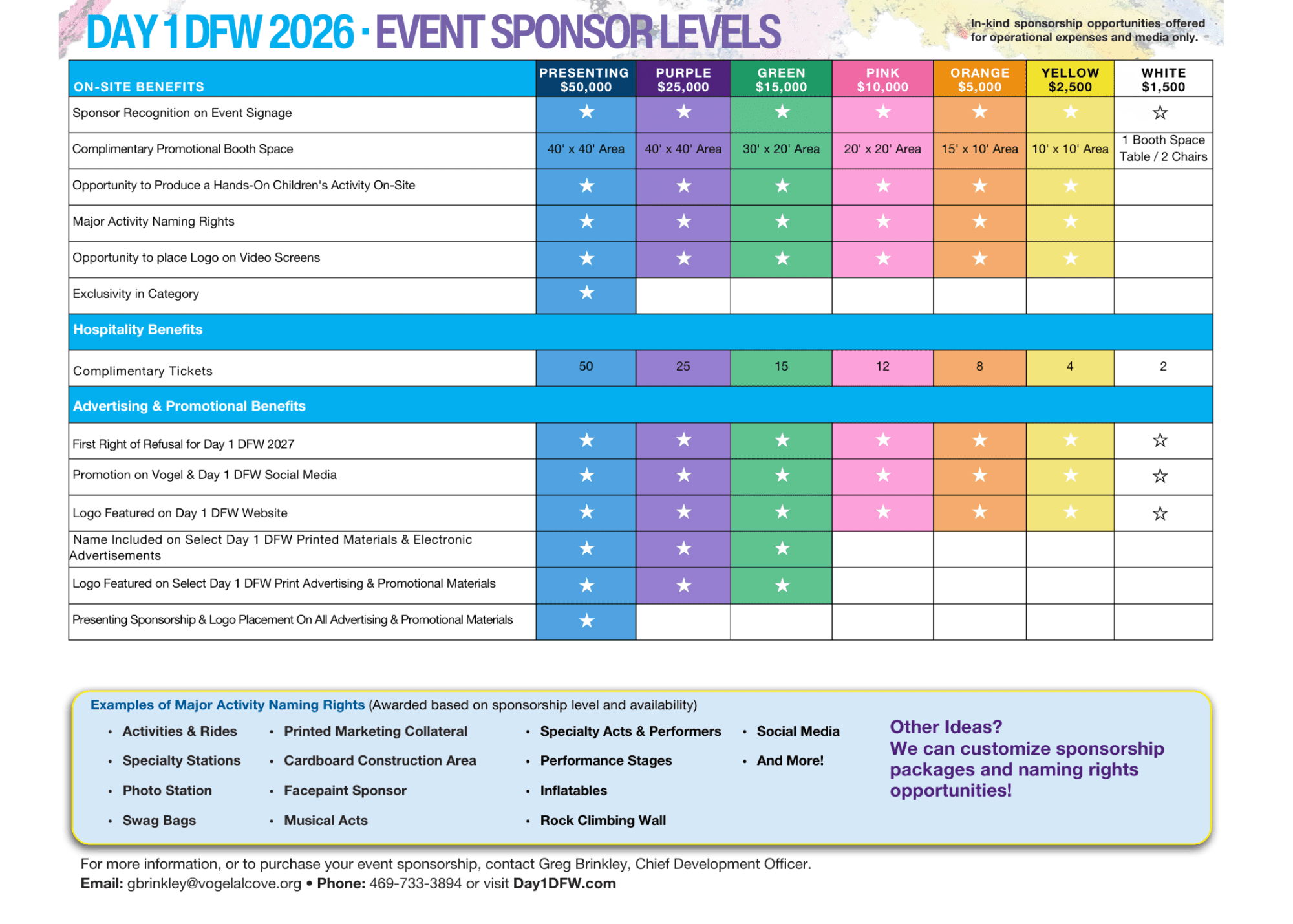 For sponsorship inquiries please contact Greg Brinkley, Vogel Chief Development Officer,