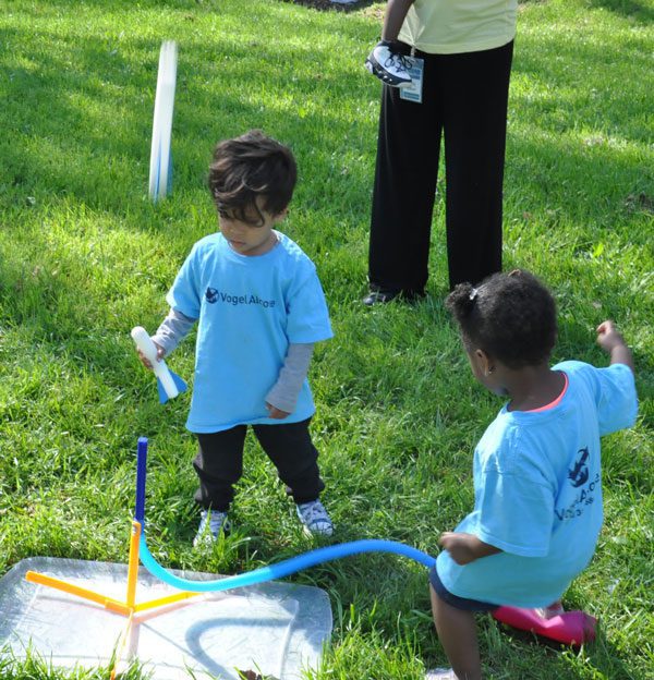 We floated pool noodle boats in a fountain, watched as air propelled a foam rocket into the sky and blew bubbles to watch how wind affects things that move. But perhaps the most fun activity was one of the simplest – flying kites. The children loved seeing the colorful kites take flight and chasing them through the meadow. In that moment, they were not worried about getting enough to eat or having a place to sleep – they were just enjoying being kids.