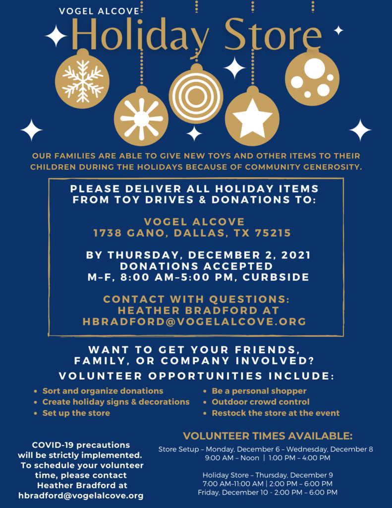 This year, a global toy shortage is expected due to supply chain disruptions caused by the ongoing pandemic. We are in urgent need of toys for this year’s store. If you, a group you belong to, or your company would like to hold a toy drive for the holidays this year—we’re encouraging donors to begin now.