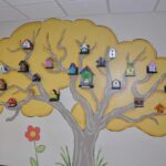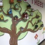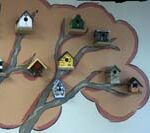 These walls are covered with birdhouses. Each birdhouse has been beautifully painted and adorned by various donors throughout the years, showcasing the creativity of individuals like performer Idina Menzel or VA Board Member Lauren Halsey, to the collaborations of groups like Univera and the Dallas Morning News. No two are alike.