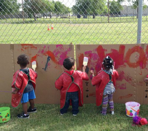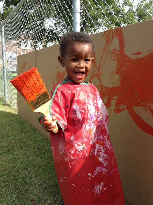 On Artsy Thursday, the children will made hats to wear and kites to fly. In the Backyard, they had the opportunity to paint on giant canvases.